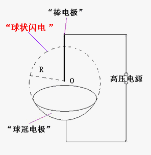 我們認(rèn)為:“棒電極”在球心O對“球冠電極”放電,可以產(chǎn)生“球狀閃電”。 [3][4]