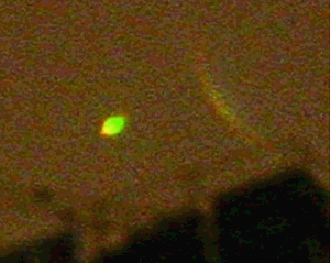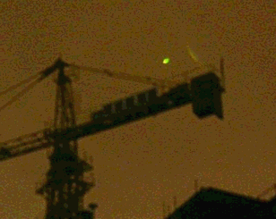 2013年6月6日凌晨,武漢市區(qū)電閃雷鳴?!段錆h晨報(bào)》攝影記者石一在機(jī)場高速公路與馬池路交會處附近的一個小區(qū)拍攝雷電時,無意中拍到幾個綠黃色神秘光團(tuán)(圖2、3)。[2]